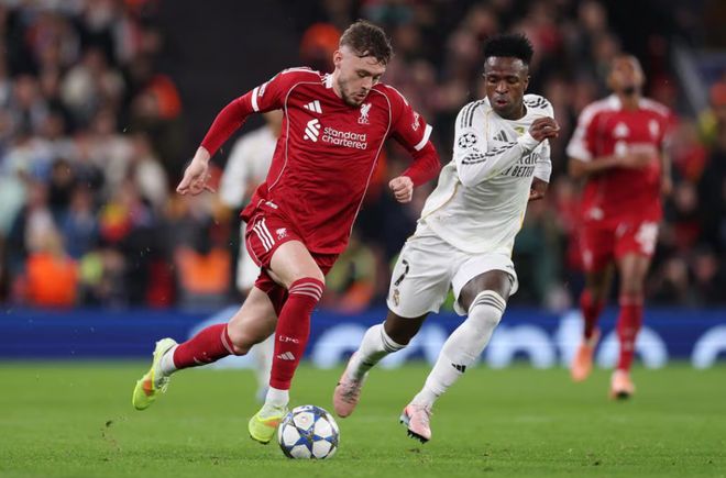 下半场第61分钟,利物浦终于打破了僵局,索博斯洛伊主罚任意球助攻麦卡利斯特头球破门,最终依靠这个进球,以1-0击败皇马。